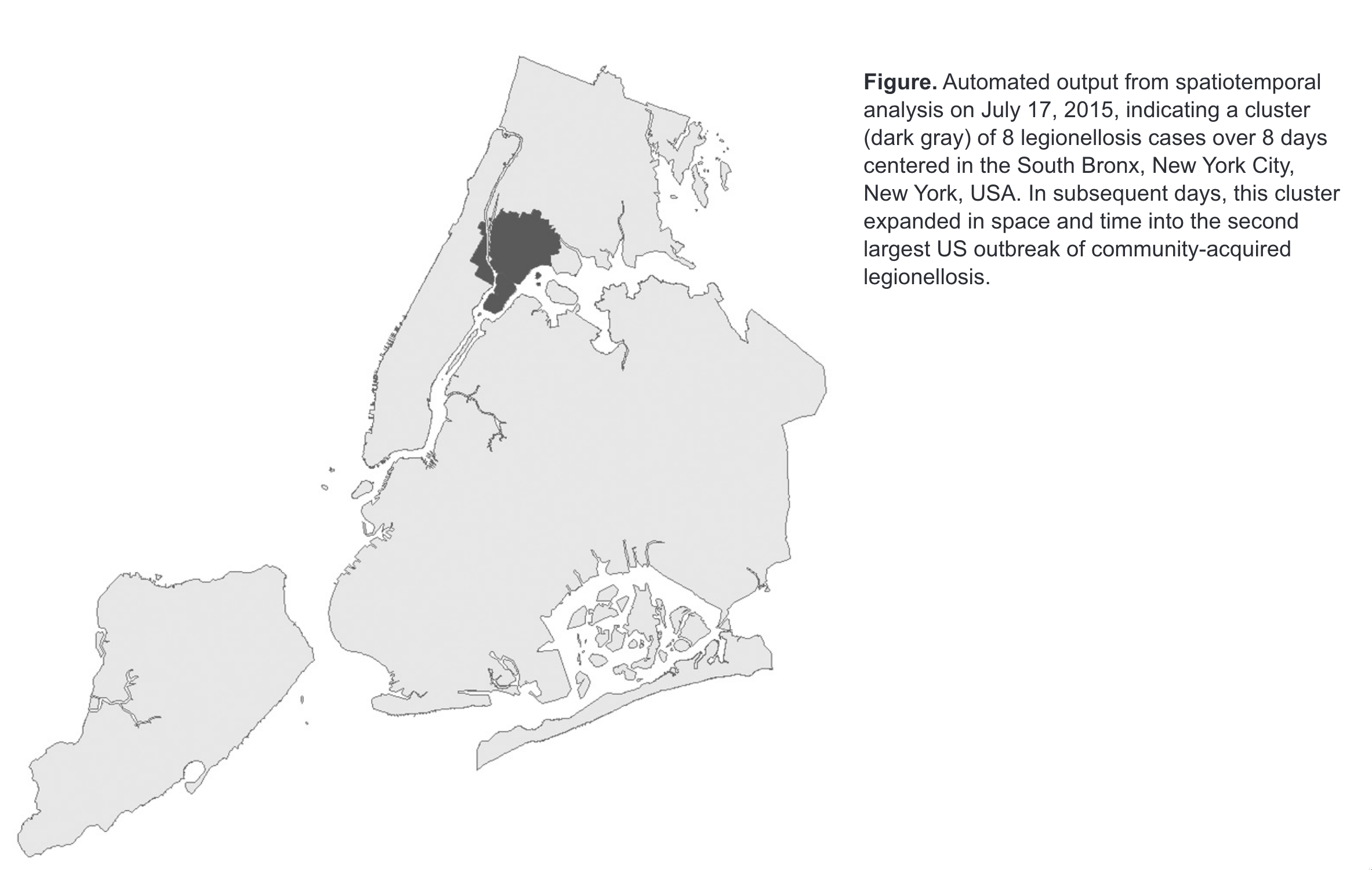 Spatial cluster of Legoinellosis cases identified by automated system (from Greene et al. (2016))