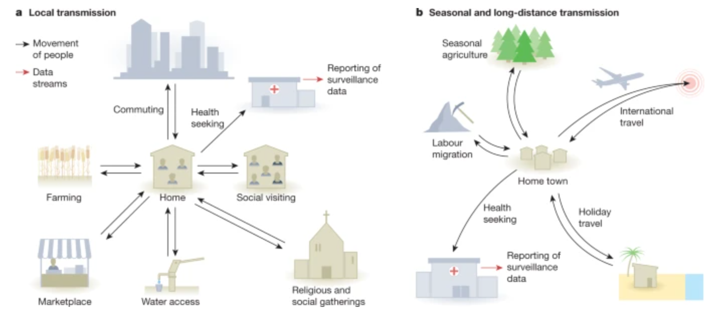 Characterizing the social and ecological determinants of spatial mobility (from Buckee, Noor, and Sattenspiel (2021))