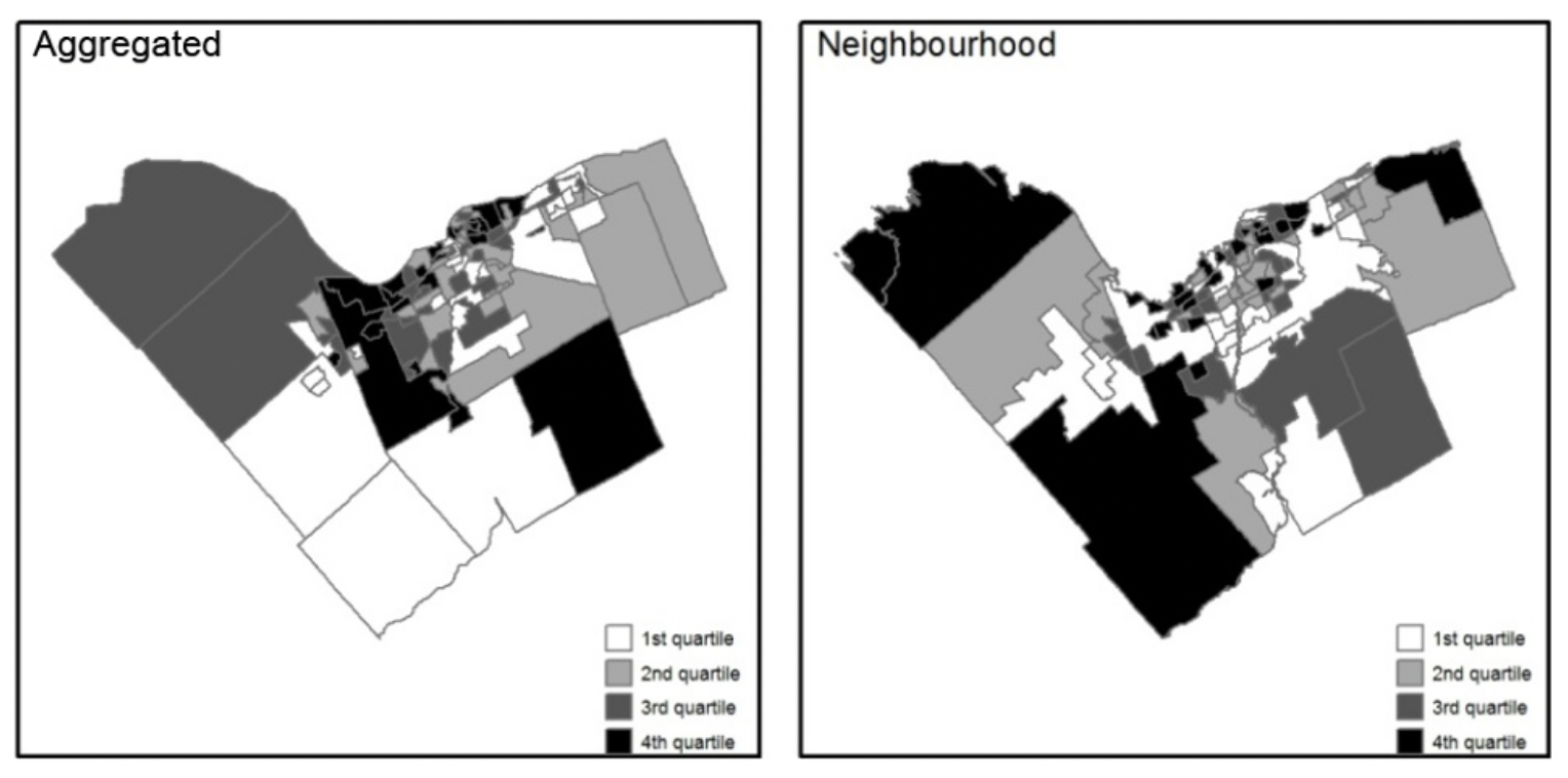 Different neighborhood boundaries at the same scale result in different estimates of local N02 exposure. (2)