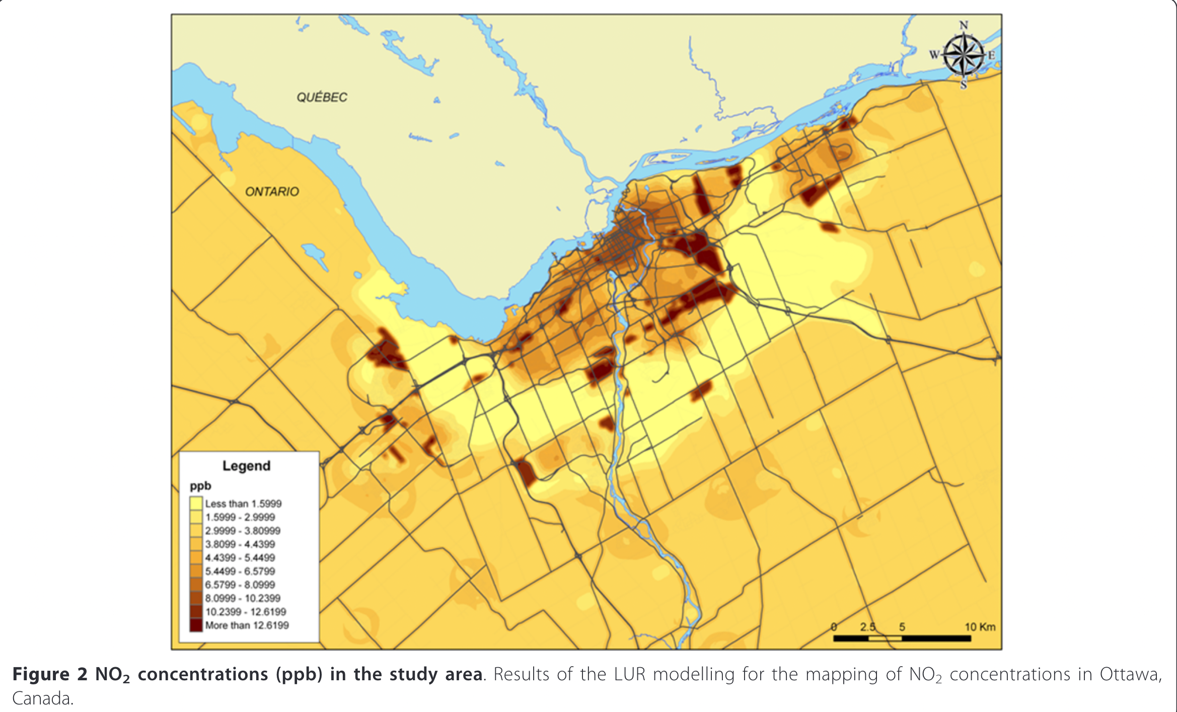Variation in N02 exposure in Ottawa, Ontario (2)