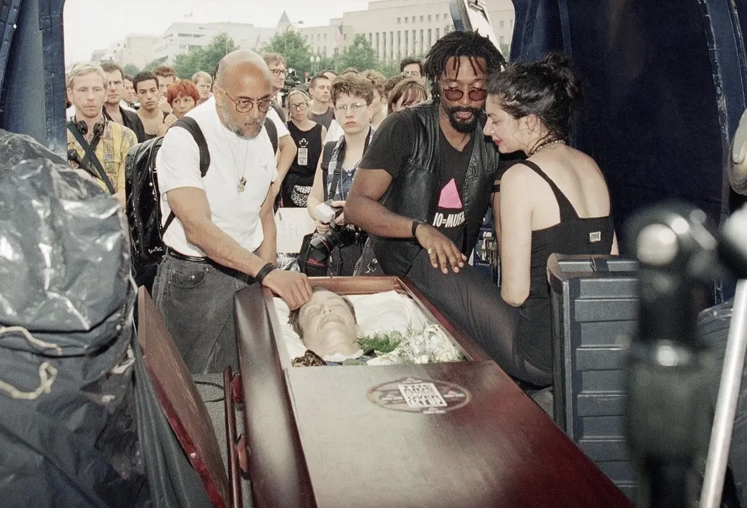 The Marys extended this work of support for the ill and dying, taking on the condition of death, which had previously conceptualized as activism’s limit. They made the dead PWA body matter, and through the formation of political affinity, infused the corpse with the power to speak. (From Levine, 2020: “How to do things with dead bodies”)
